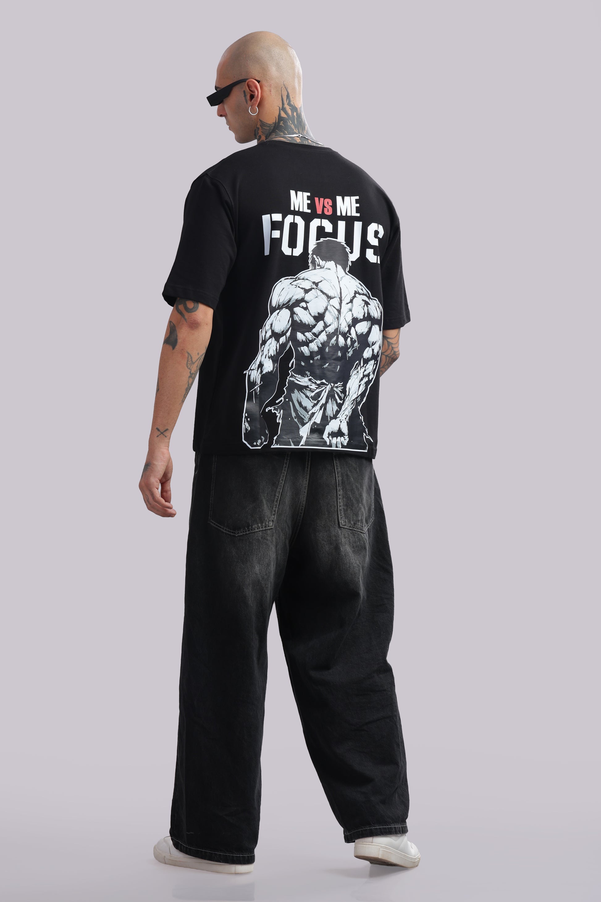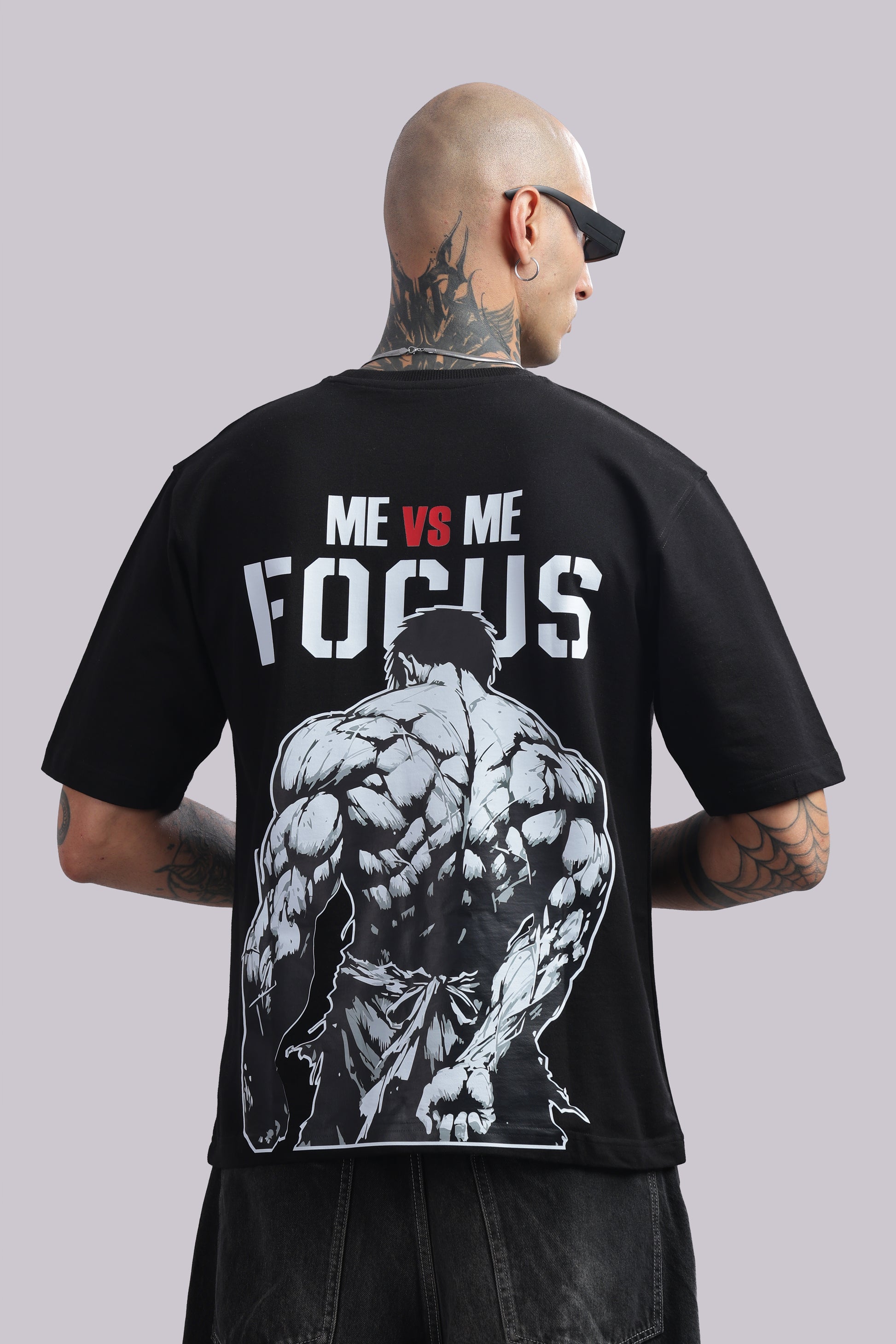 Unleash your inner beast with the BUNKERFIT "Me vs Me Focus" Oversized Tee.